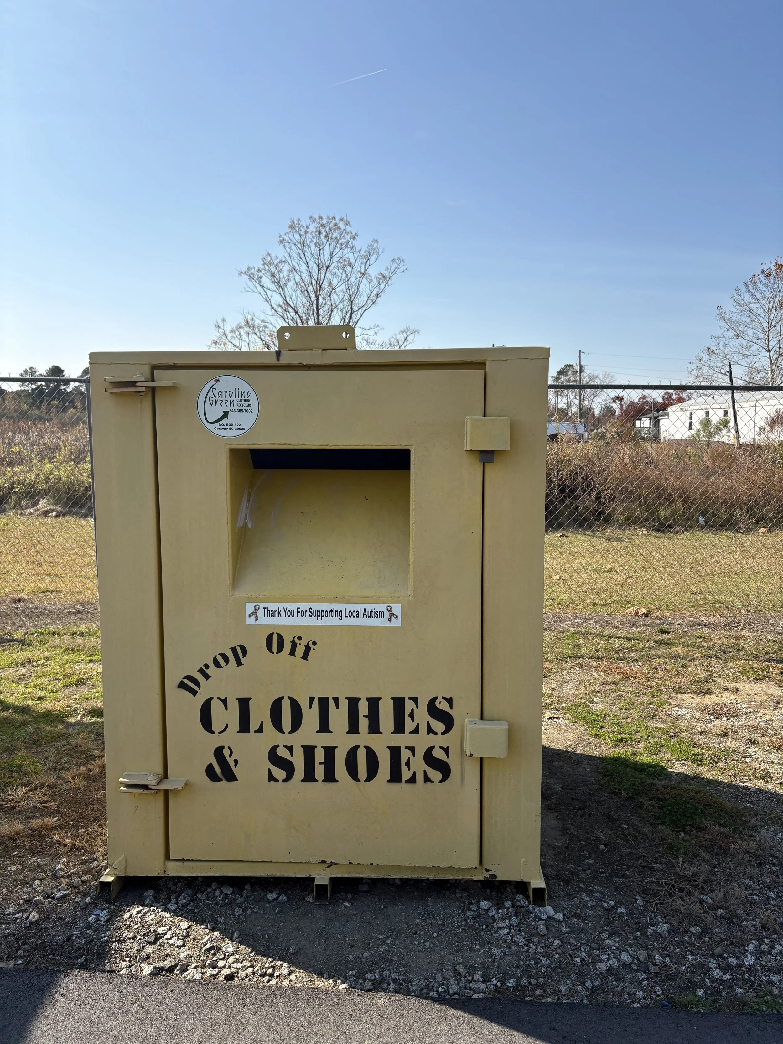 Hosting a Carolina Green clothing drop-off is an easy way to bring textile recycling to your community. We install and service everything at no cost, making it simple to keep reusable clothing in circulation and out of the landfills.